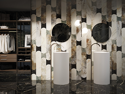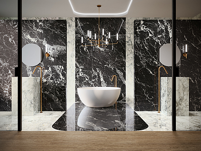 Background tile, Effect stone, Color black & white, Glazed porcelain stoneware, 120x280 cm, Finish polished