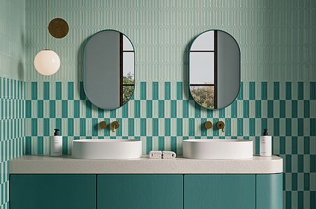 Background tile, Effect unicolor, Color green, Glazed porcelain stoneware, 12.3x12.3 cm, Finish matte